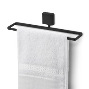 O toalheiro de parede Ou da Linha Eleve possui fixação com adesivo Ultra Click, super resistente, seguro, que dispensa furos e protege suas paredes.