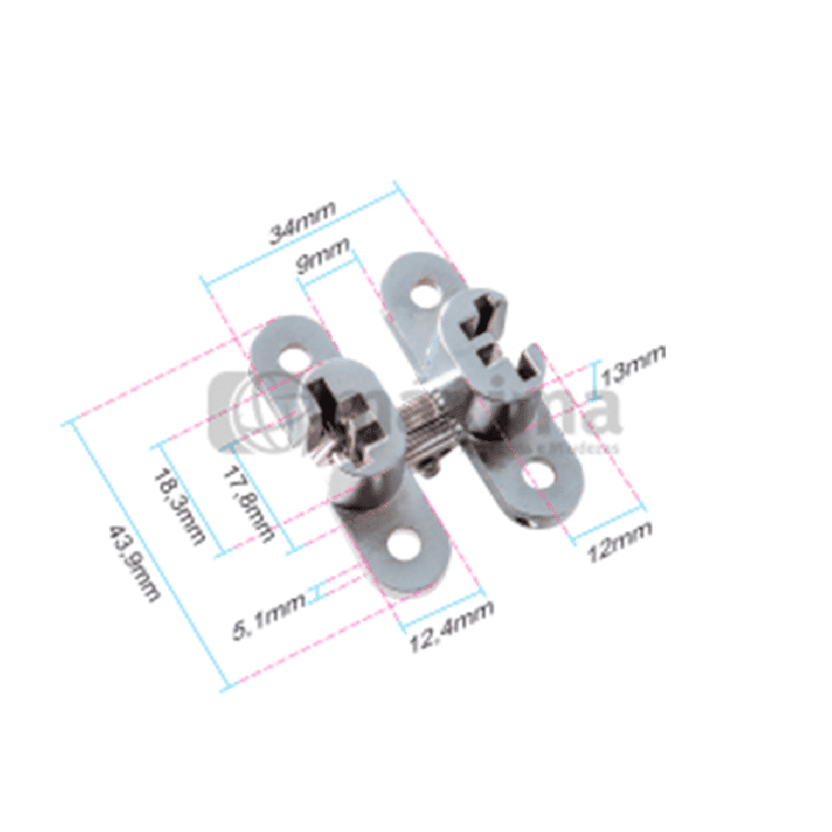 DOBRADIÇA INVISÍVEL 13X45MM 180G INOX ESCOVADO