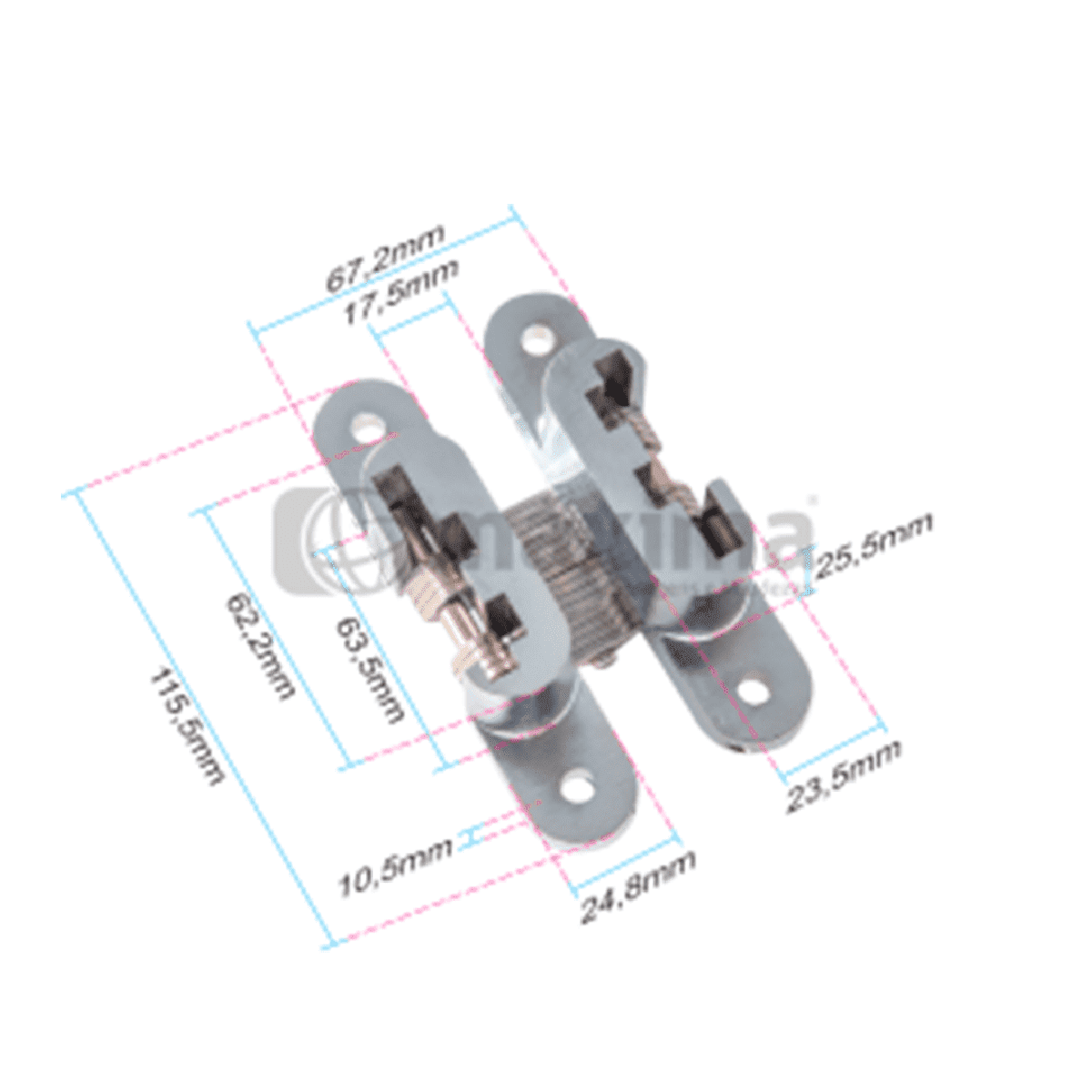 DOBRADIÇA INVISÍVEL 25X118MM 180G INOX ESCOVADO