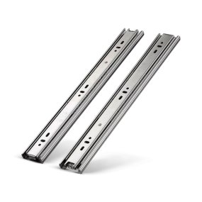 Capazes de suportar até 30 kg e proporcionar um deslizar suave e confiável. Corrediças perfeitas para quem busca resistência e qualidade em móveis.
