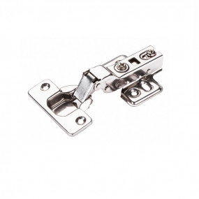A dobradiça slide on 165° ou dobradiça camarão como é conhecida, possui uma abertura de 165° graus, muito utilizada para móveis que necessitem de abertura maior, como portas de canto.