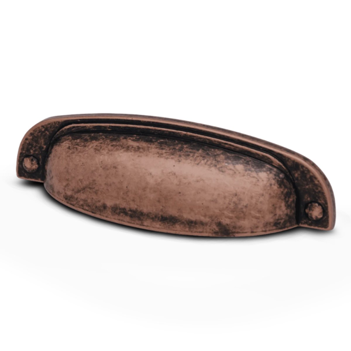 PUXADOR QUEBEC 96MM COBRE VELHO TAMBORADO FOSCO
