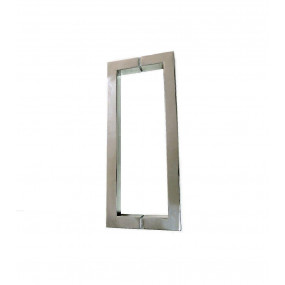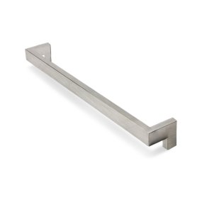 Puxador tubular com pés quadrados, em aço inox AISI 304. Para portas de madeira ou vidro.