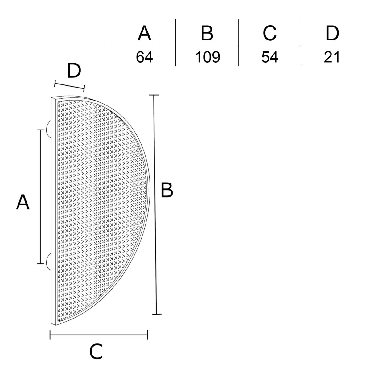 | Dimensão | Comprimento: 54 mm // Largura: 108 mm // Furação: 64 mm |