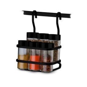 SUPORTE PORTA TEMPERO C/6 VIDROS AÉREO PRETO 2808PT